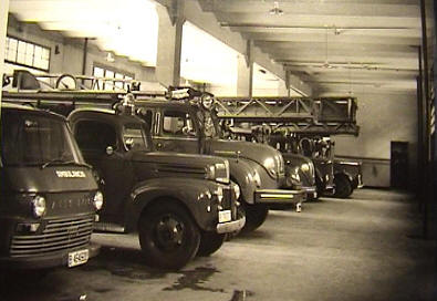 He conseguido algunas fotos del mes de septiembre de 1966 y paso a exponerlas porque se puede apreciar el tipo de vehículos con los que prestábamos servicio y nuestra apariencia de nuevos bomberos.