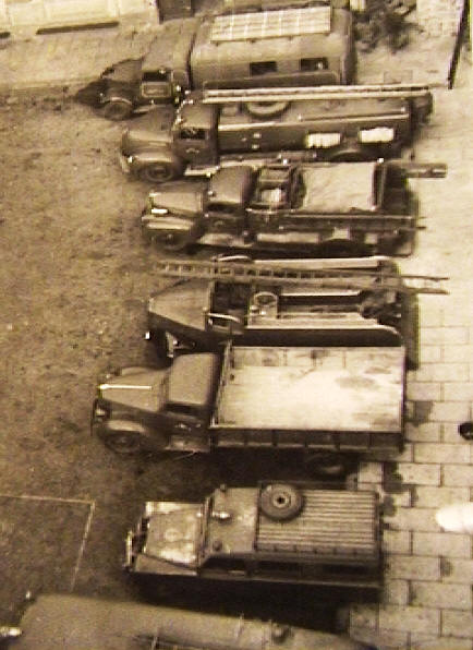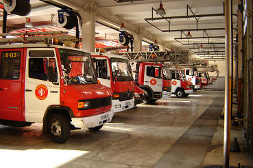 En septiembre de 1966 fotografié una sala de útiles que albergaba anticuados vehículos de primera salida y también fotografié desde el castillete, un viejo patio de bomberos que más bien parece el patio de un desguace. Mientras que en la sala y en el patio que he fotografiado este mes de octubre del 2006 se ven unos esplendidos y guapos vehículos. También me sorprende los números de las estadísticas que aparecen en la Memoria de la revista Alarma de 1966 intentando hacerlos coincidir con los números de la Memoria del año 2005 (la memoria del 2006 todavía no está disponible)