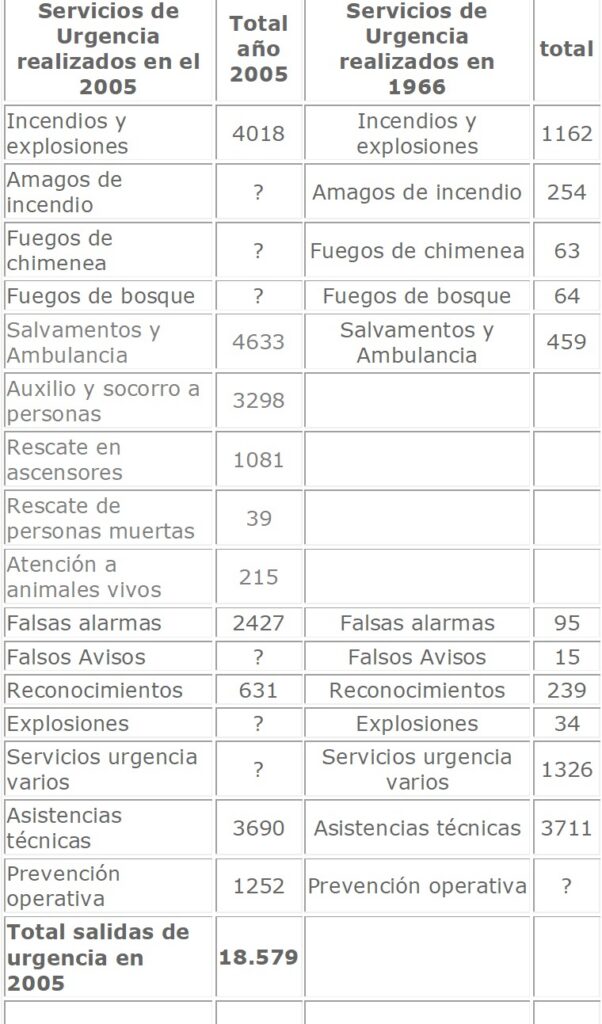 | Servicios de Urgencia realizados en el 2005 Total año 2005 | Total año 2005 | Servicios de Urgencia realizados en 1966 total Incendios y explosiones año 1966 | Total año 1966 |