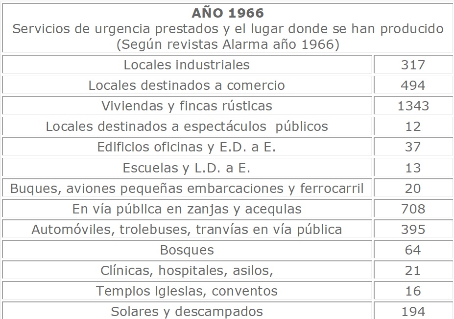 Resumen de los servicios de urgencia realizados correspondientes al año 1966 (extraído de las Revistas Alarma 1966