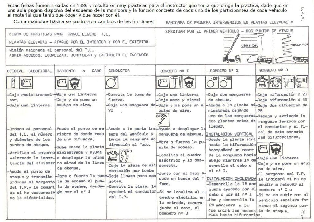 -La ficha contempla la intervención a realizar, paso a paso por cada uno de los bomberos de la dotación del Tanque Ligero únicamente en los primeros minutos (maniobra de rescate y ataque)