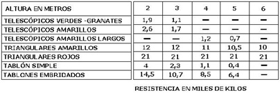 TIPOS DE PUNTALES DISPONIBLES ALTURA Y RESISTENCIA EN MILES DE KILOS