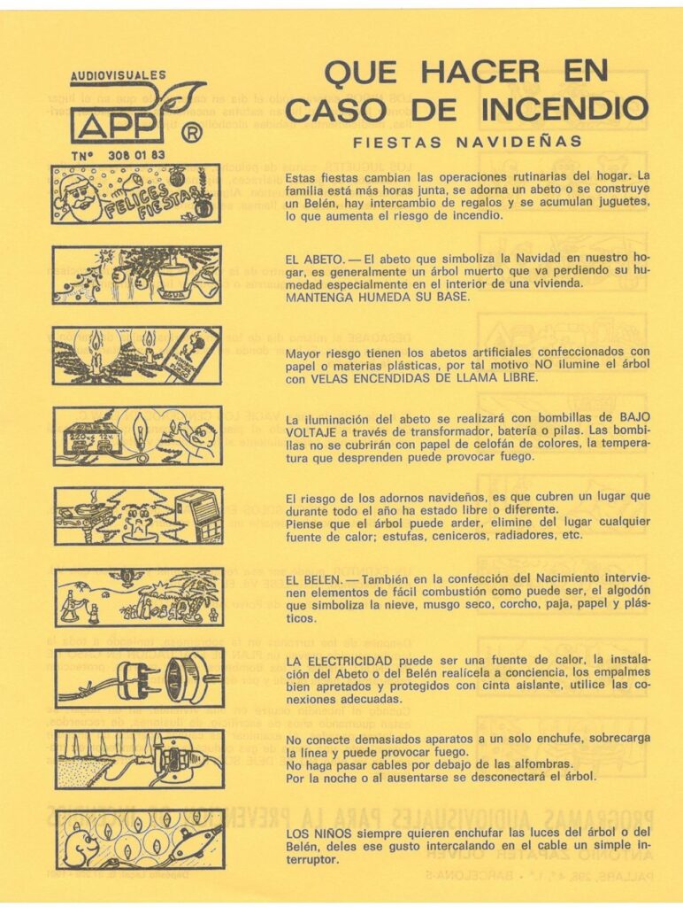 Por pequeño que pueda ser un incendio, en casa y en estas fechas navideñas seguro que te amarga las fiestas. Por ello y con la intención de reducir su número de incendios confeccioné la siguiente hoja amarilla de prevención.