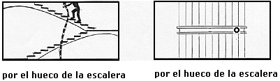 La manguera asciende por los tramos de escalera siguiendo su configuración. Se ha de procurar extender la manguera junto a las paredes con lo que se evitan codos bruscos y continuos tropezones.
