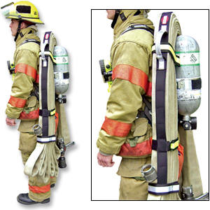 Utillaje con cintas Velcro con dos mangueras utilizada por los Bomberos de Lex Moreaux ( Francia )