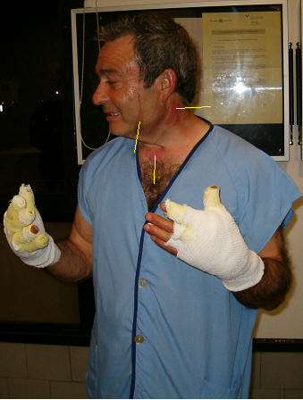 ¡¡ Mieeeerda ! ! . . .Todos al ataque. . . estamos solos . . línea directa de 25 . . y seguidamente en radio-contacto con el Cecob solicita refuerzos.