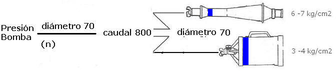 Las mangueras son las mismas utilizadas por el Servicio. Tramos de 25 a 30 metros en diámetros de 45 o 70.