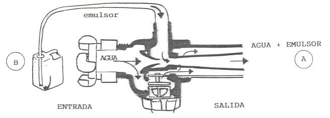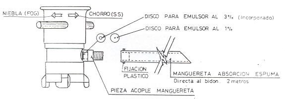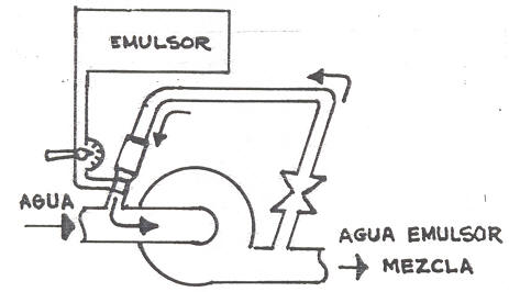 La forma de mezclar emulsor—agua responde por igual al esquema expuesto. si bien existen variaciones en cuanto a la forma de proveerse de líquido emulsor y al mando de regulación del porcentaje, por lo que se han agrupado de la siguiente manera: