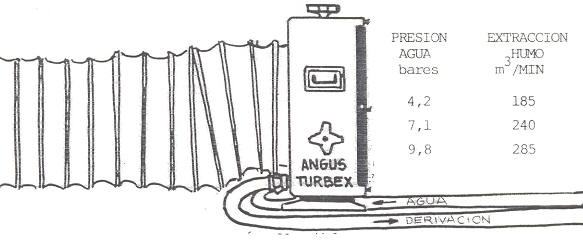 El régimen de extracción de humos es de 200 m3/min. a 2900 r.p.m.