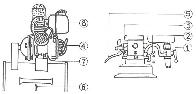 — Apretar e1 excitador nº 3 hasta que salga gasolina (Carburador lleno)
