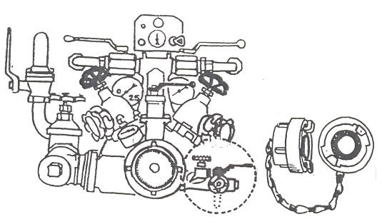 Las tomas de emulsor exterior en las bombas, se reconocen fácilmente por estar racoradas con racor storz de diámetro 25 y junto al mismo dispone de una válvula graduable cuyo diseño varia en algunos vehículos pero que su escala numerada se ha modificado unificando la forma de proporcionar emulsor al agua según el número de lanzas empleado.