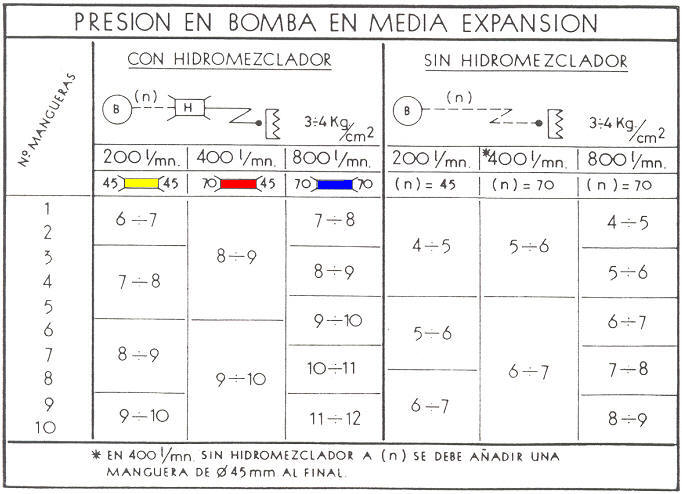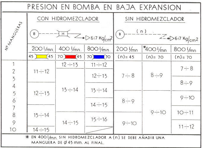 Como valor orientativo se ha establecido que la perdida producida en el proporcionador será de 4 k/cm2 cuando se emplee para espuma de baja expansión y 2’5k cuando la espuma sea de media expansión.